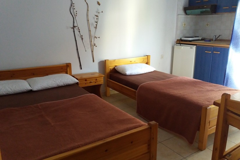 •Трокреветни студија се лоцирани на прв спрат бр.11, 12, 13, 14, 15, 16, 17, 18 со (еден двоен кревет + еден единечен)