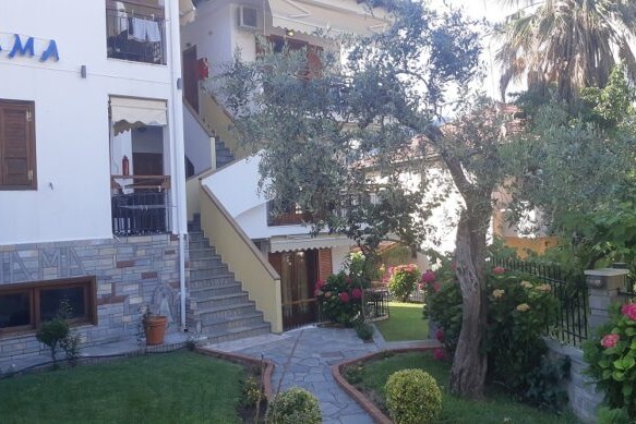 Вила “НАМА“ лоцирана во Скала Потамиа на оддалеченост околу 50 тина метри од плажата Голден биџ.Извонредна местоположба на вилата која излегува на една од најубавите плажи на островот.На само неколку метри од вилата има супермаркети,ресторани,таверни …..