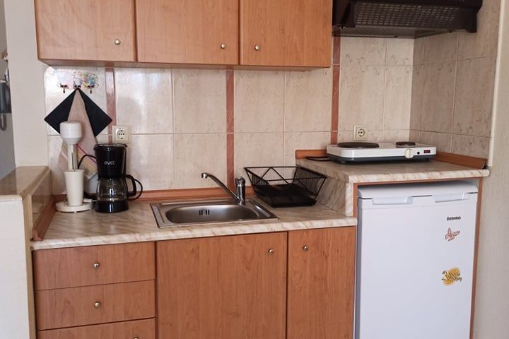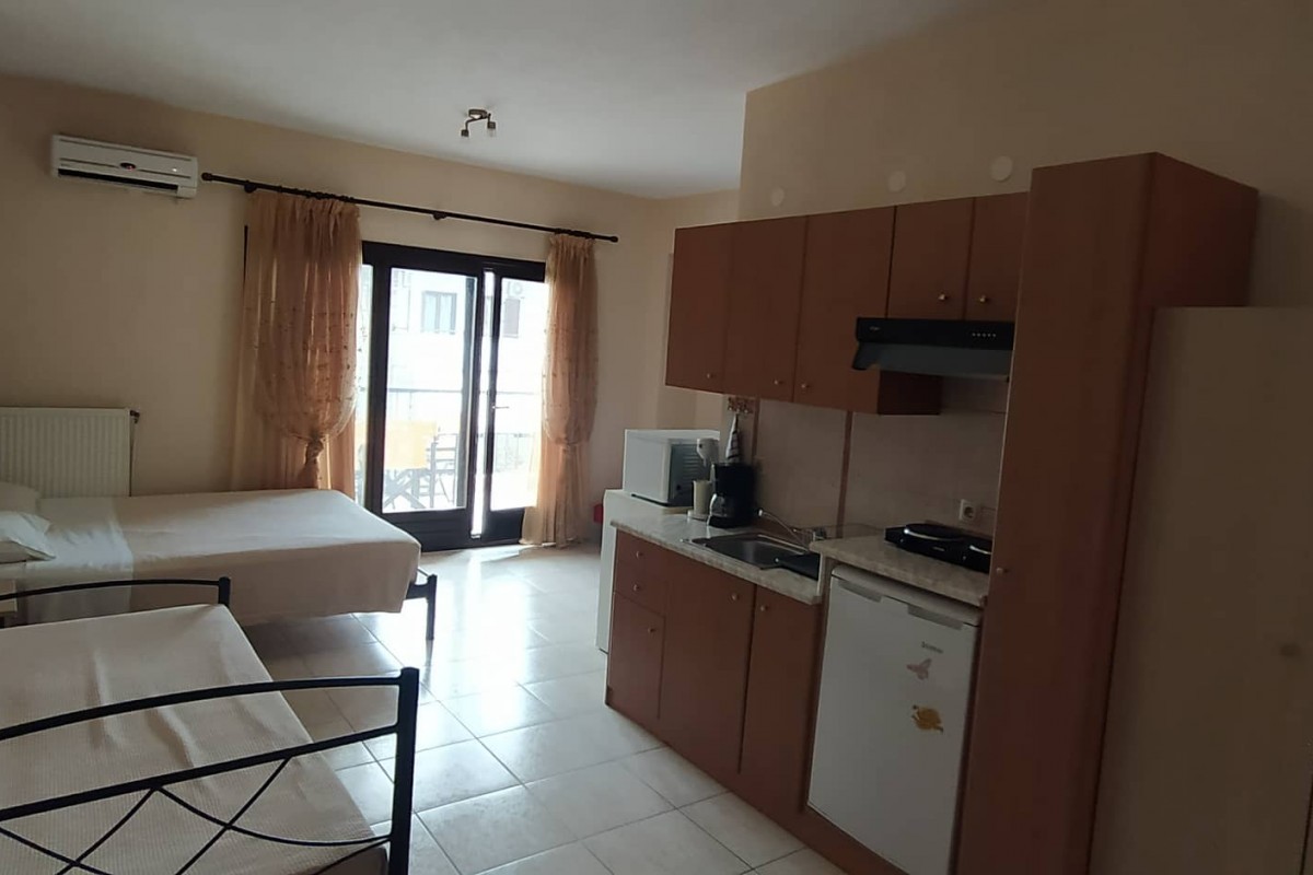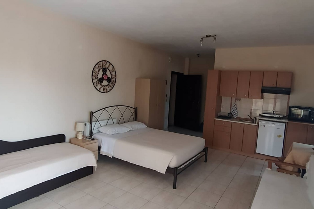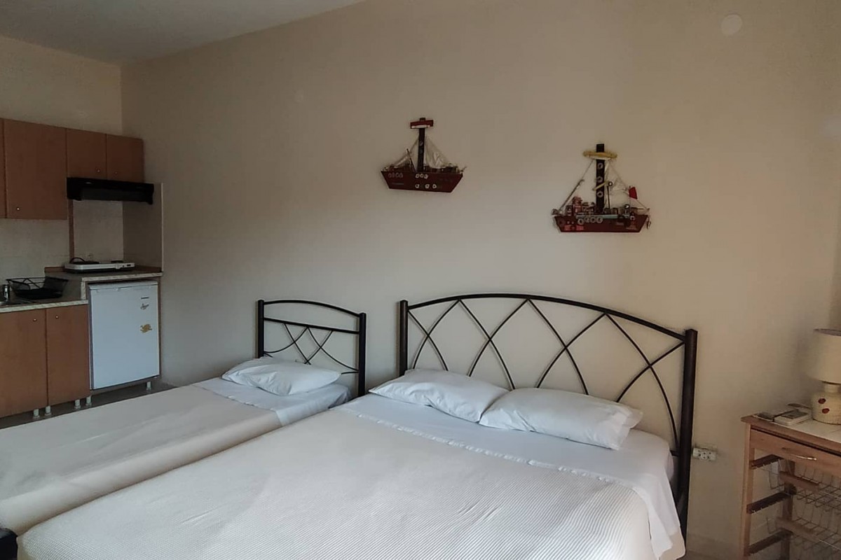 Студиоброј 1 (1/4) – студиосоголематераса, целосноопременакујна, квалитетенмебел и сопствентоалет. Располагасобраченкревет и 2 стандардни кревета.