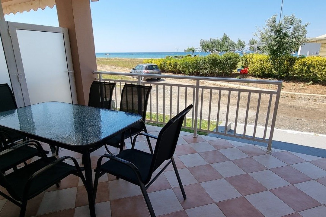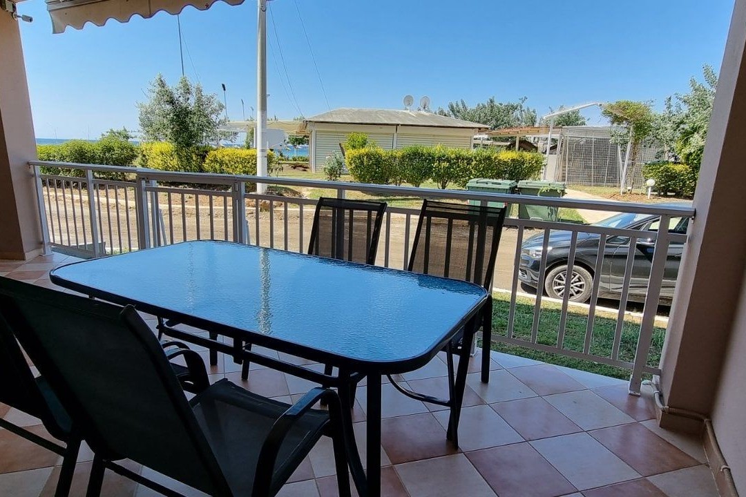 Апартман бр.6 – втор кат. Располага со дневна соба со целосно опремена кујна, една спална соба, тоалет и пространа тераса со директен поглед море, клима, ТВ, Wi-Fi, комарници и тенда. Во спална соба има француски кревет за 2 лица и софа на пуштање а во дневна соба софа на пуштање.