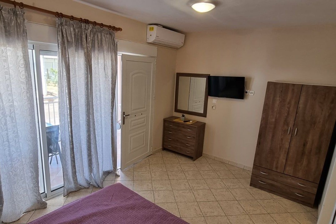 Студио бр. 3 – приземје. Располага со комплетно опремена кујна, тоалет, голема пространа тераса со директен поглед море, клима, ТВ, Wi-Fi, комарници и тенда. Има француски кревет и аголна гарнитура на пуштање.