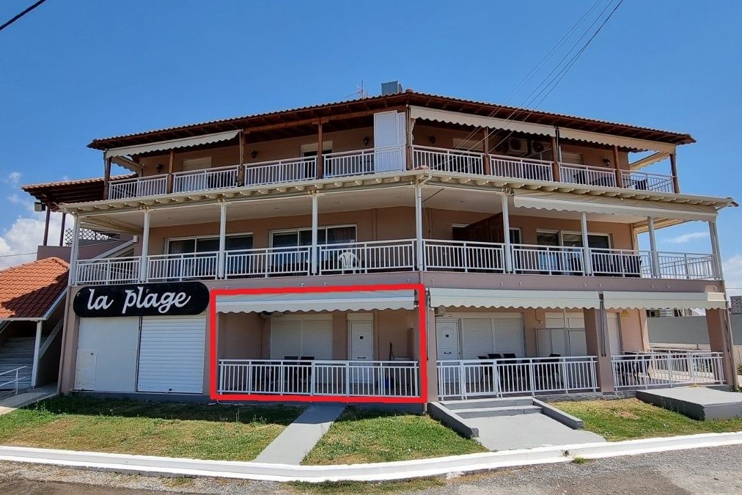 Куќа „LaPlage“ е лоцирана во новиот дел на НеаФлогита, прва линија море, на сама плажа. Располагаме со високо квалитетни 3 четирикреветни студија, 2 четирикреветни апартмани и 2 дуплекс апартмани (сите со директен, отворен поглед на море). Сите соби располагаат со големи тераси, комплетно опремена кујна, ЛЦД ТВ, реновирани нови тоалети и комплетно опремени кујни. Интернетот, климата и сет пешкири се вклучени во цената. Паркинг простор обезбеден пред вилата. Пред вилата има кафе бар со лежалки во кој нашите патници имаат поволности. Вилата располага со 2 дополнителни помошни кревети, како и 2 креветчиња за бебе (се добиваат бесплатно по принцип на прва резервација). Куќата е повеќе години во нашата понуда и е добро позната на нашите патници.