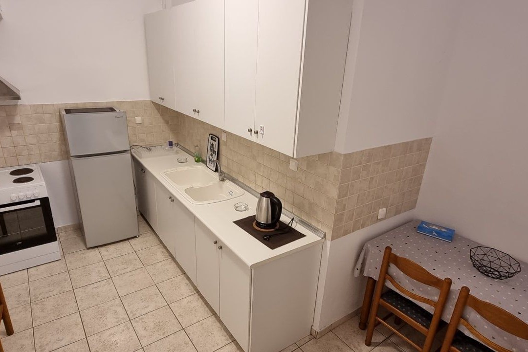 Апартман бр.4 – прв кат. Располага со дневна соба со целосно опремена кујна, една спална соба, тоалет и пространа тераса со директен фронтален поглед море, клима, ТВ, Wi-Fi, комарници и тенда. Во спална соба има француски кревет за 2 лица а во дневна соба софа на пуштање.