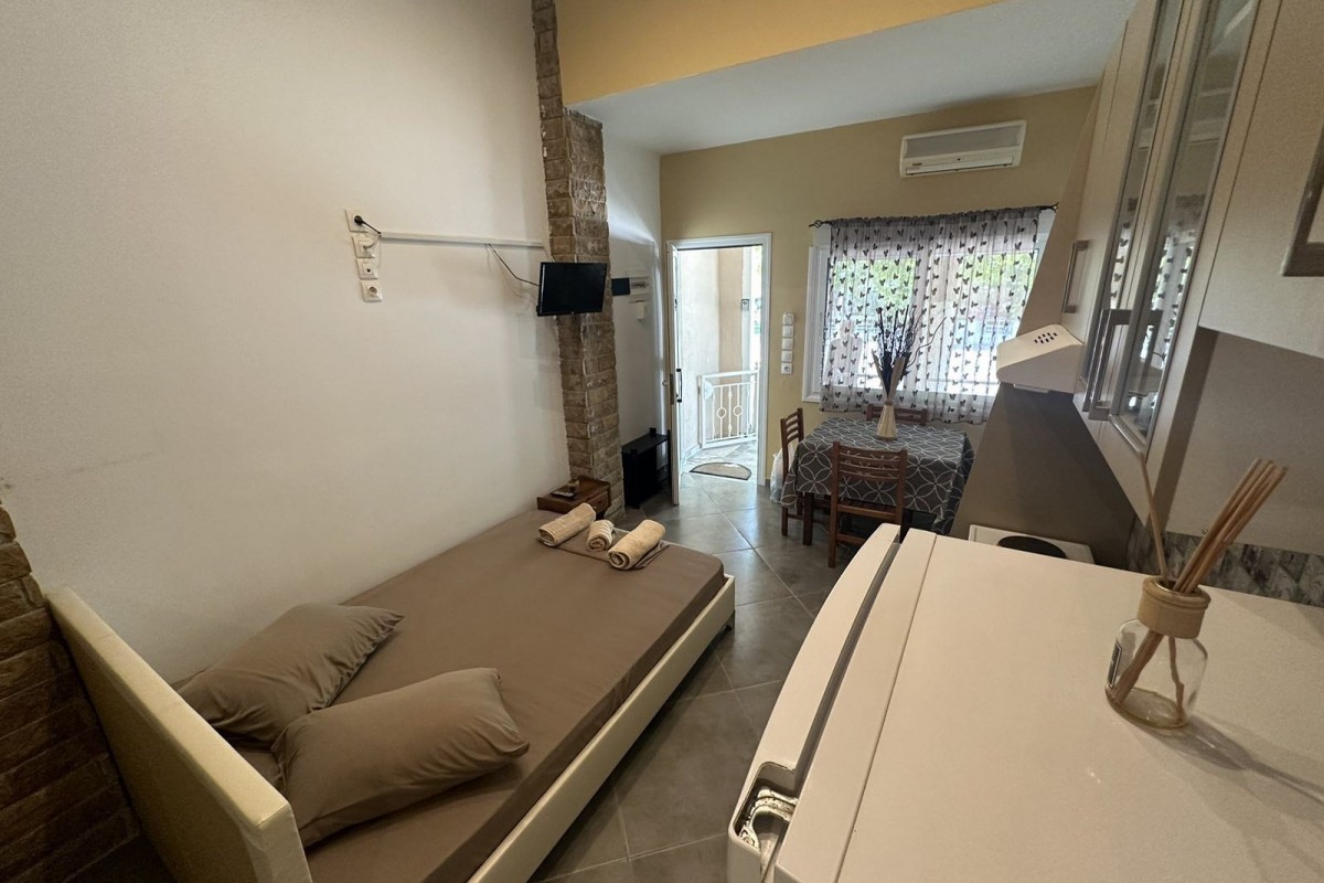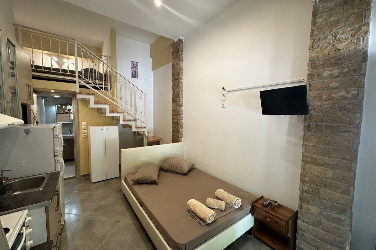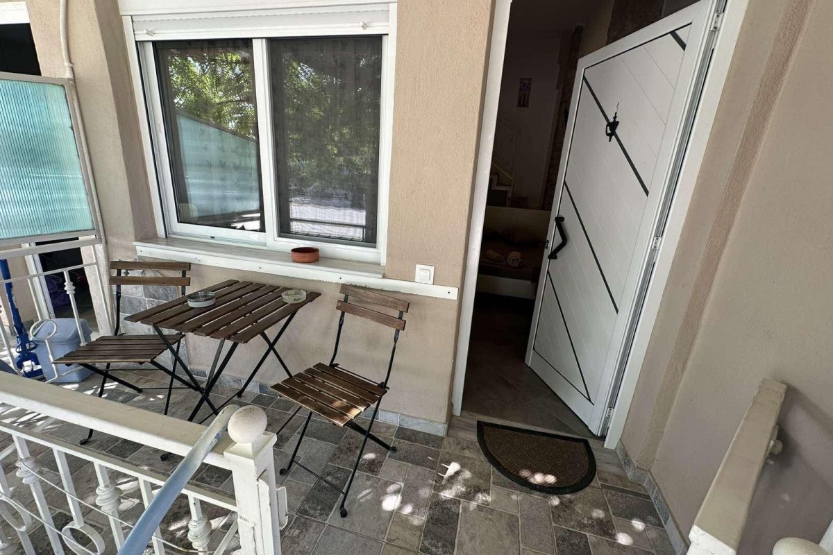 1/4 мезонет бр. 1 – високо приземје. Мезонетот е наменет за 4 лица, има два француски кревети, еден во кујната и еден на катот. Располага со комплетно опремена кујна, тоалет и сопствена тераса со поглед на улица и море, ТВ, Wi-Fi.
