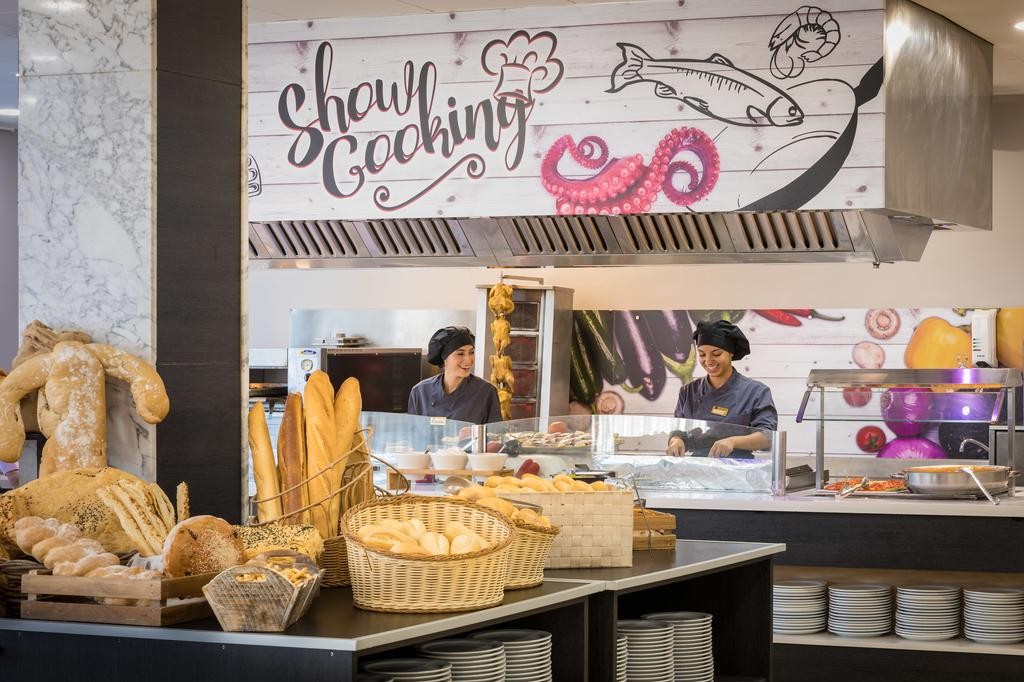 Услуга: Во хотелот има бифе-ресторан и бар. Освежителни пијалаци од барот на плажа се совршен начин за уживање во топлото време. Гостите можат да изберат FBww (полнпансион со вклучени вода и вино за време на оброците) или all inclusive. Со all inclusive понудата се достапни различни алкохолни и безалкохолни пијалаци. По барање, може да се подготват диетални јадења, детски оброци и храна без лактоза. Дополнително, хотелот нуди специјални менија и пикник пакети.