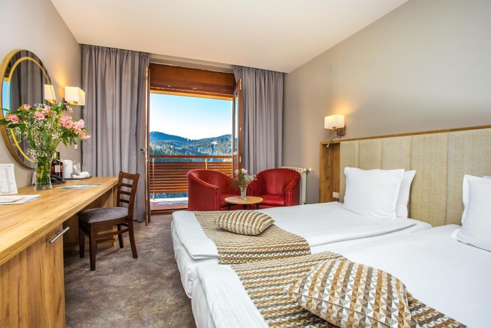 Сите соби и апартмани се јужно ориентирани и овозможуваат незаборавен престој со спектакуларен поглед кон планината.