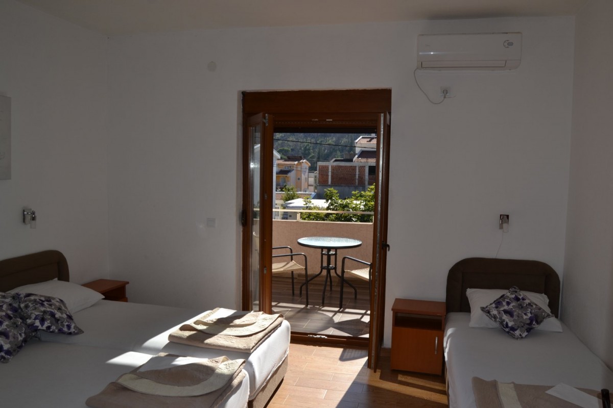 Вилата е лоцирана во мирниот дел на Сутоморе под магистралата, на 4-5 мин. пешачење од автобуската страница во Сутоморе, на 6-7 минути пешачење до најблиската плажа (градската плажа), и 10 мин. пешачење до центарот на Сутоморе. Во близина на вилата има 2 супермаркети. Вилата е нова градба и располага со 1/2, 1/3 и 1/4 студија. Сите соби се комплетно опремени со сопствен тоалет, TV, Wi-Fi интернет конекција, клима (вклучена во цената).