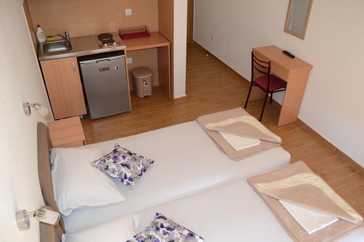 Во вилата има две двокреветни соби кои немаат кујна односно располагаат само со бокал за кафе и фрижидер. Истите се продаваат за 5 евра поевтино од ноќ.