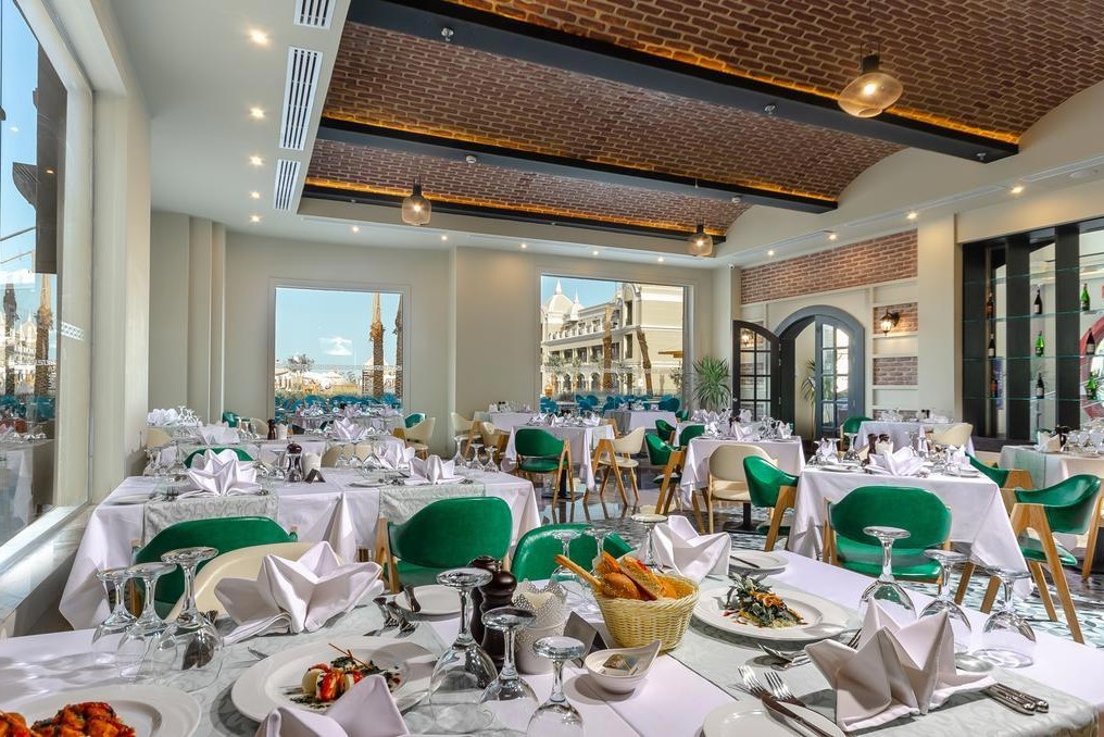 Содржини: Хотелот освен што располага со главниот ресторан кој нуди богата интернацинална и домашна храна, исто така рапсолага и со 3 а ла карте ресротани. Има повеќе барови каде се служат пијалоци, меѓу кои лоби бар и бар на плажа.